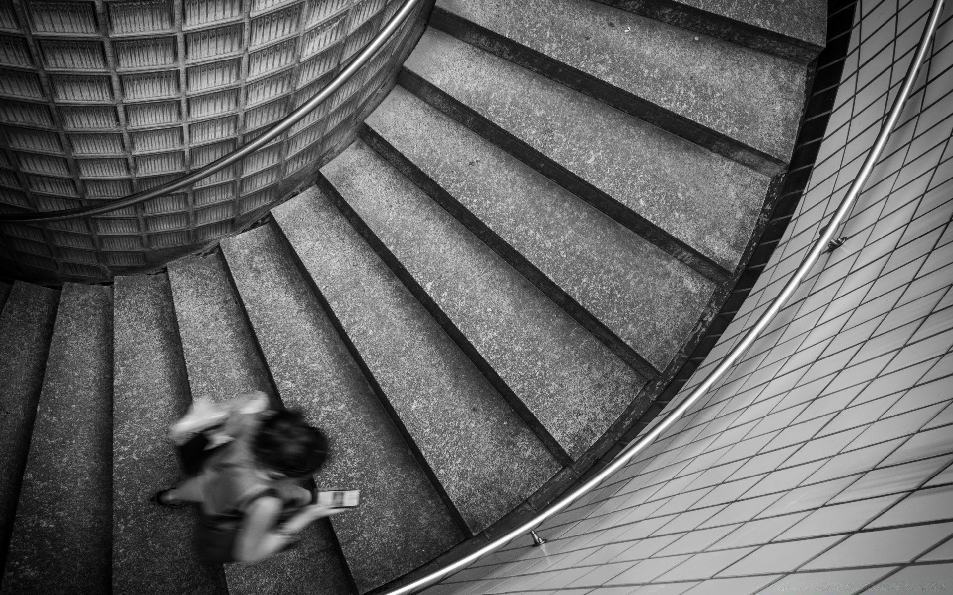 Дівчина біжить по гвинтових сходах - шпалери на телефон