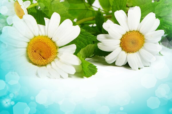 Білі ромашки з зеленими листочками