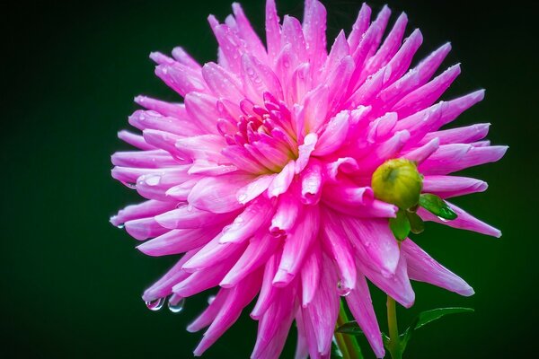 Яскраво-рожева Жоржина на зеленому тлі