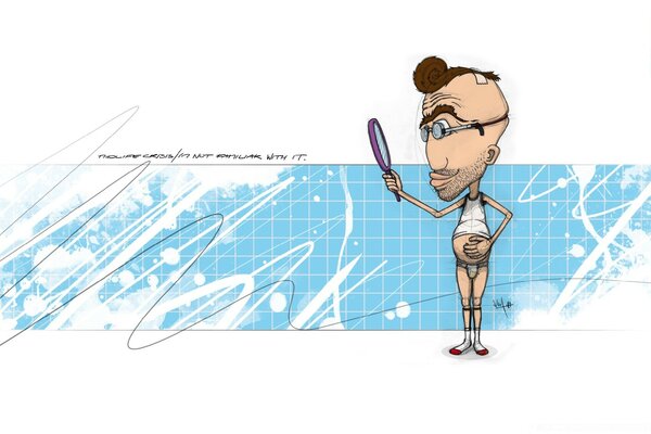 Мужик в білизні з великим животом і лупою