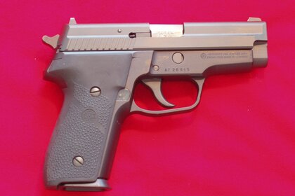 Пістолет. Зброя на червоному тлі