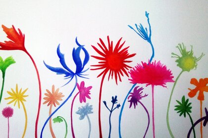 Зображення різнокольорових квітів на білій стіні