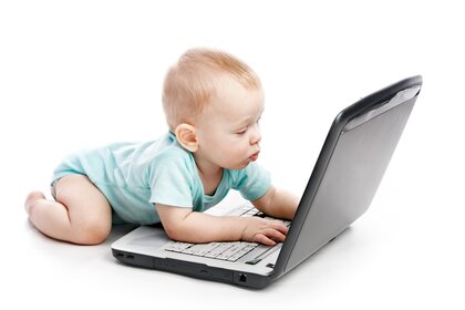 Дитина розглядає новітній ноутбук