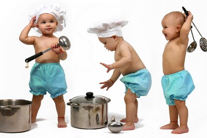 Дитина грається з кухонними приладами
