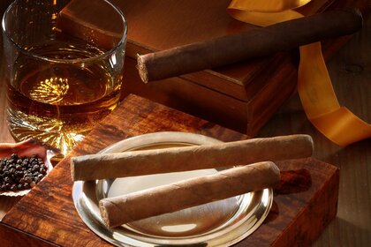 Натюрморт з вина, їжі та сигар
