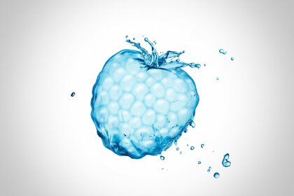 Незвичайна блакитна полуниця з води з відлітають частинками