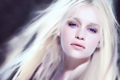 Дівчина блондинка з кольє з перлів і короткою стрижкою