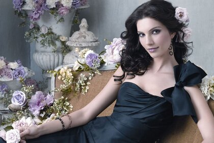 Наречена з букетами і квіткою троянди в волоссі