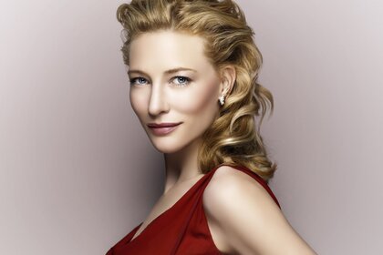 Дівчина зі світлим волоссям на синьому тлі. Посмішка