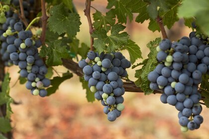 Виноградні грона звисають з лози