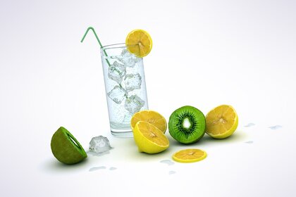 Вода з лимоном і льодом у високій склянці