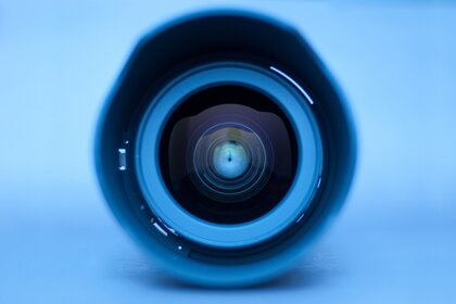 Синій об'єктив дивиться на камеру
