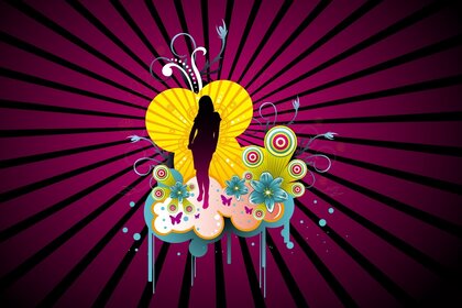 Векторний дизайн, жіночий силует з метеликами
