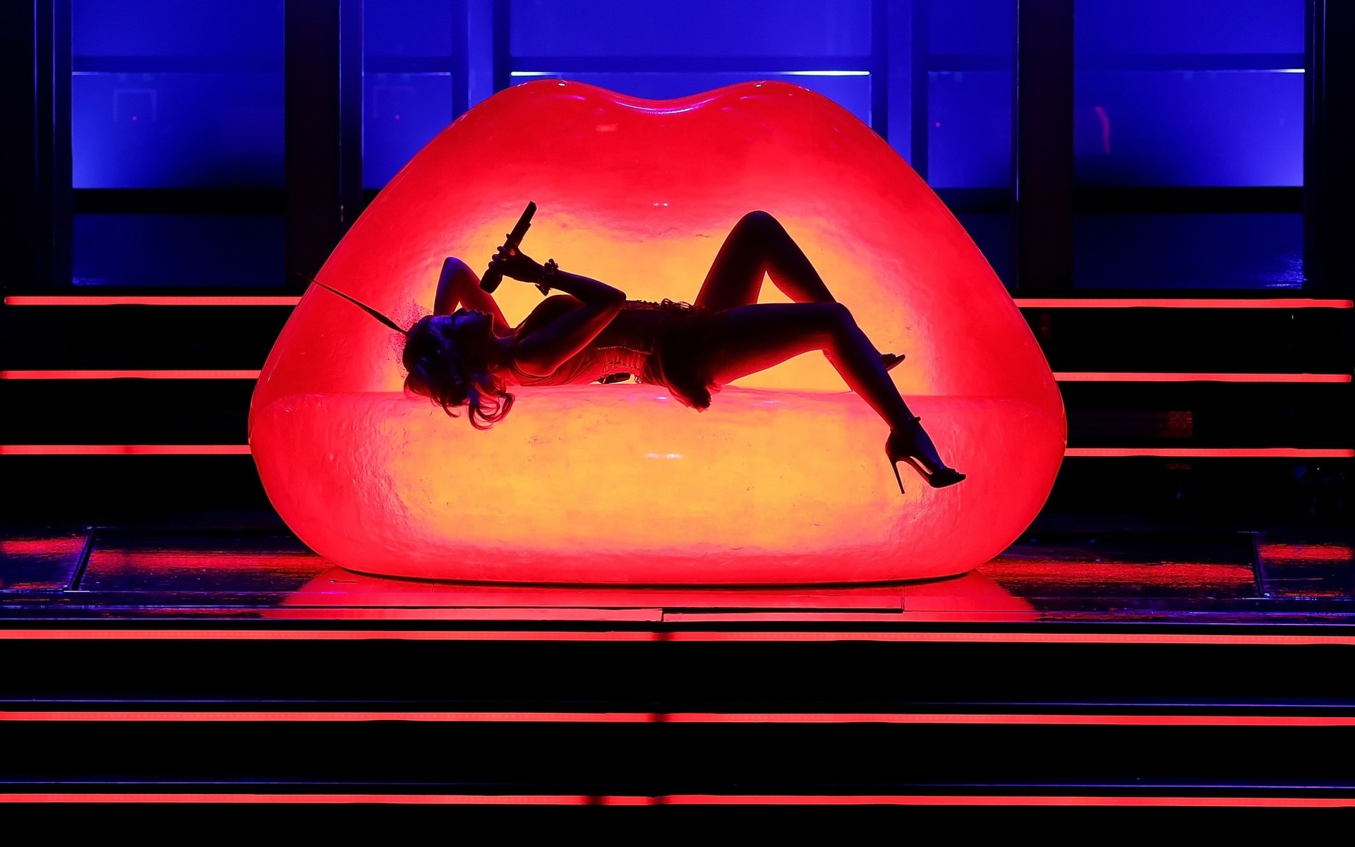 Сексуальна співачка співає свою пісню на сцені - шпалери на робочий стіл