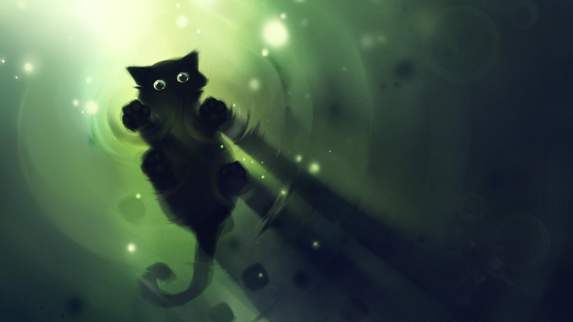 Силует чорного кошеня з-під води - шпалери на робочий стіл
