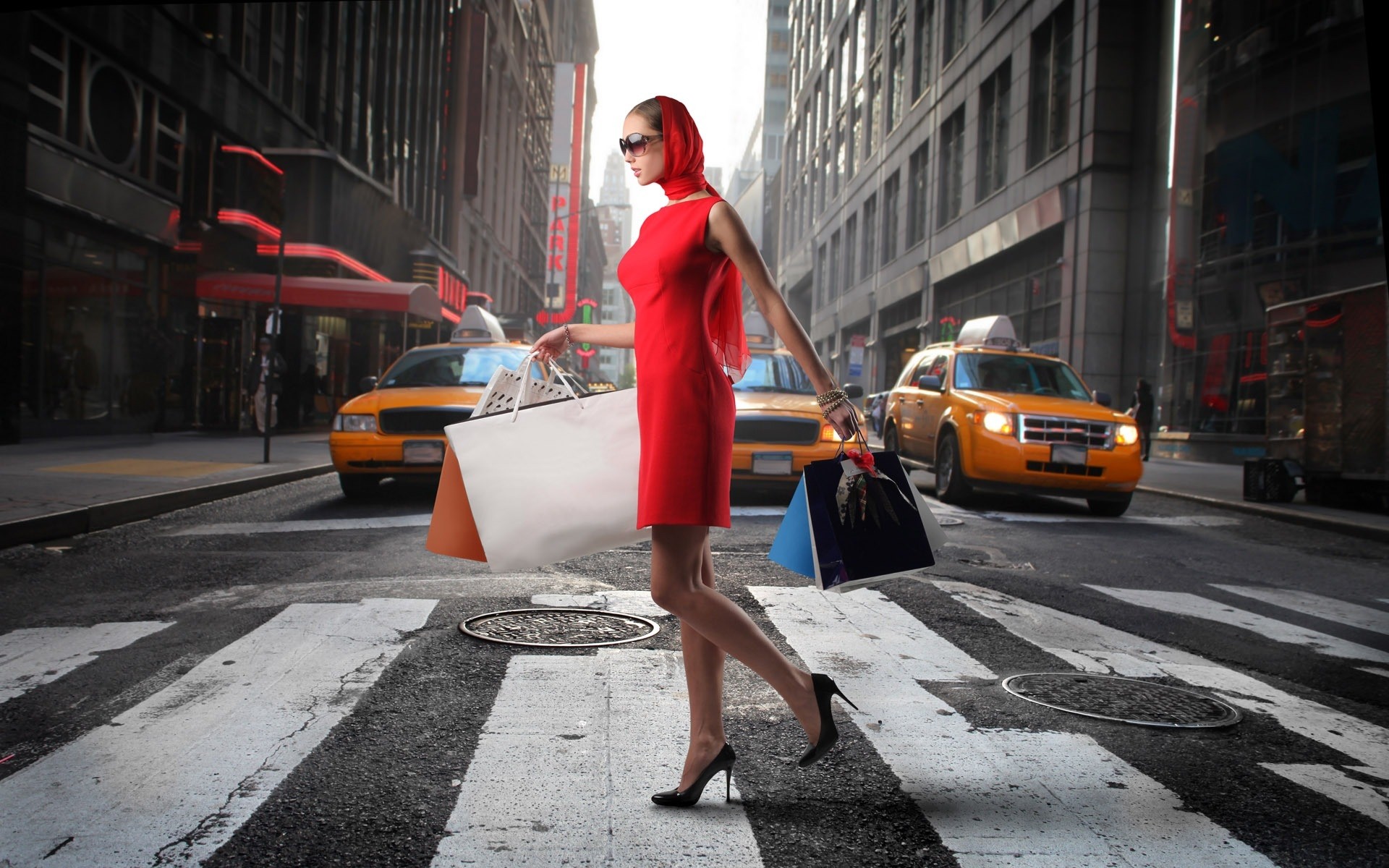 Модна дівчина йде з шопінгу - шпалери на телефон