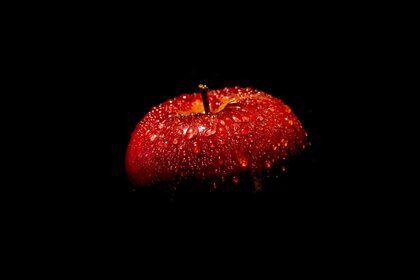 Темний фон. Червоне яблучко. Крапельки на яблуці