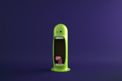 Зелена капсула-монстрик розкрила рот так що видно язикЗелена капсула-монстрик розкрила рот так що видно язик