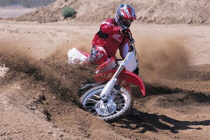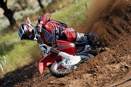 Мотоцикл у повороті багато землі