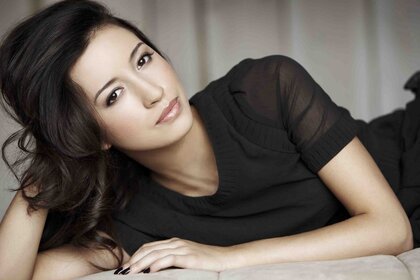Красива брюнетка лежить на ліжку