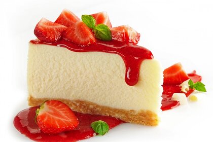Полуничний чізкейк на білому тлі