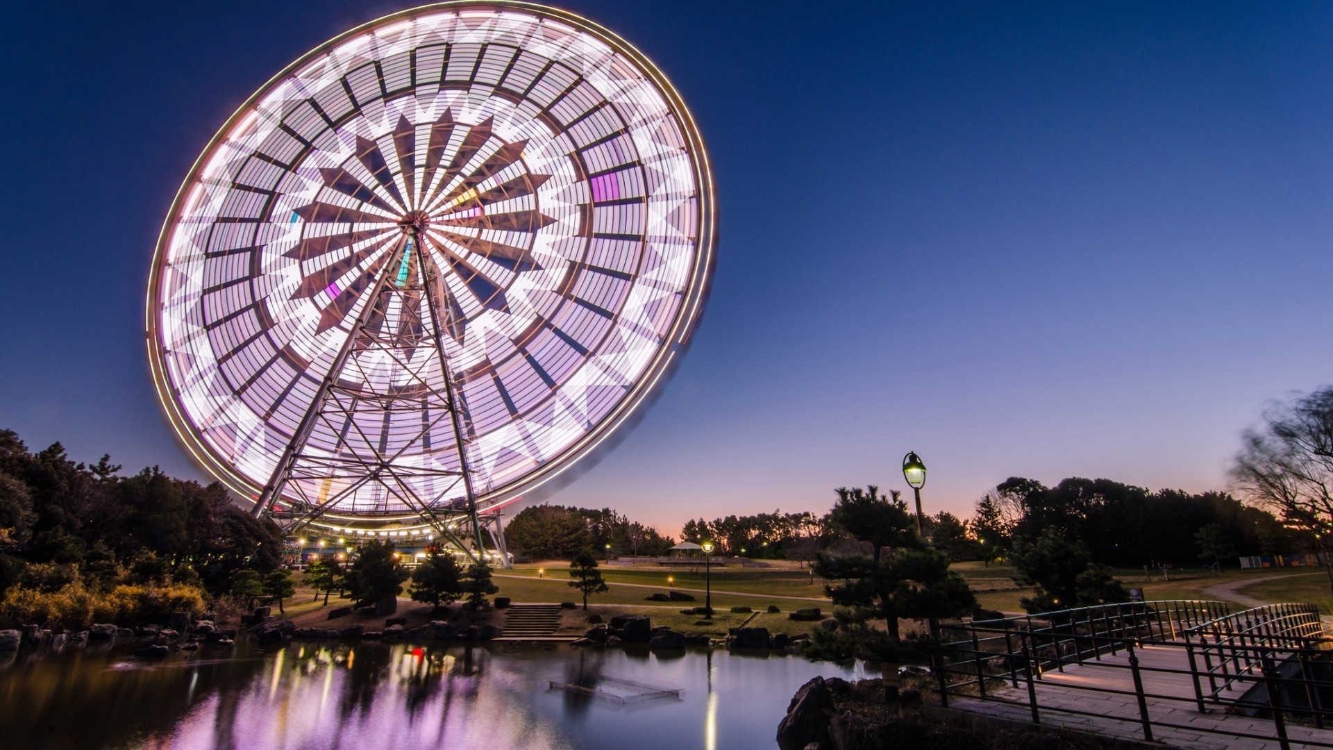 Яскраво освітлене колесо огляду - шпалери на телефон