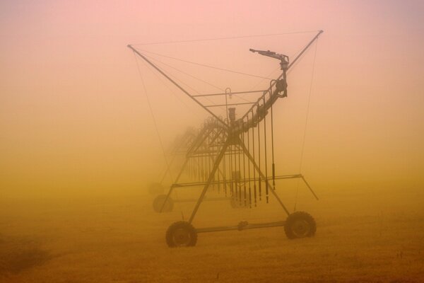 Конструкція на колесах в тумані