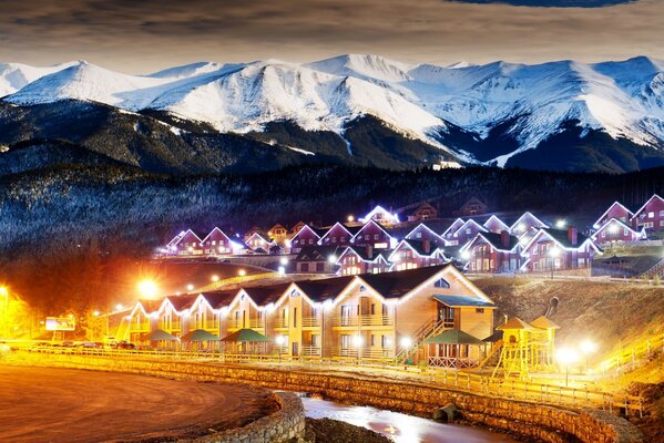 Затишні будиночки на тлі засніжених гір