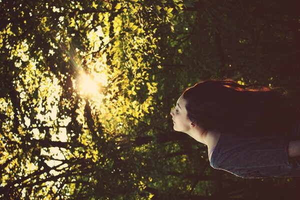 Дівчина насолоджується природою в лісі