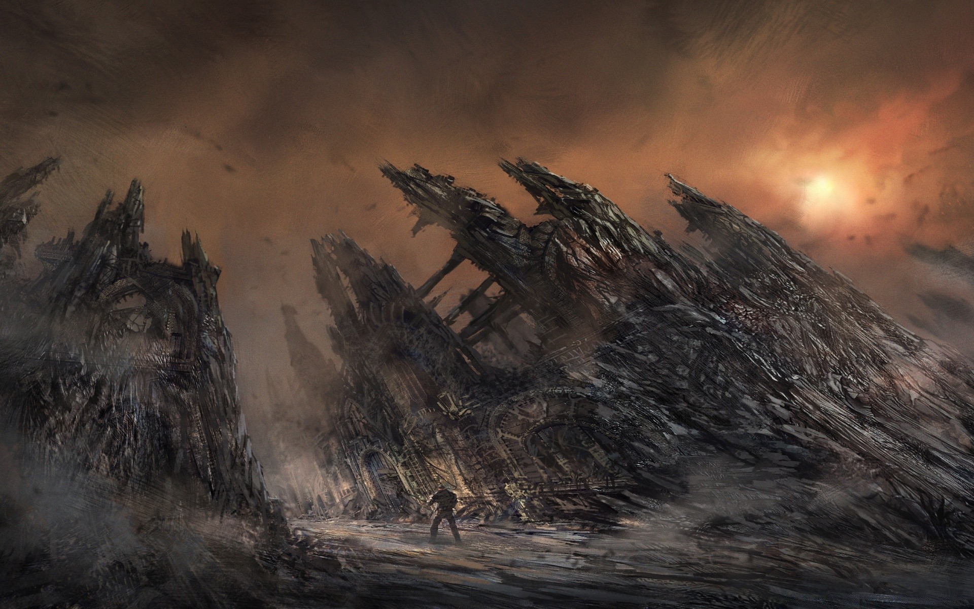Ілюстрація персонажа зі зброєю і промальованим заднім планом