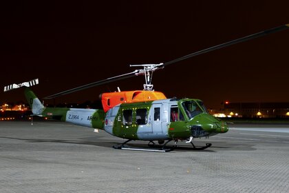 Вертоліт стоїть на аеродромі, чекає, коли відправиться в політ