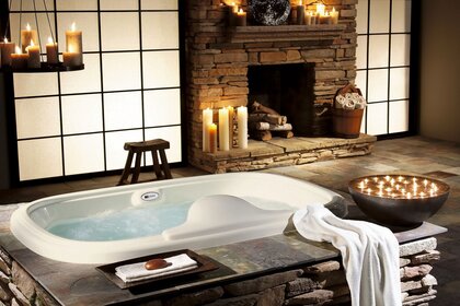 Дівчина сидить в джакузі і дивиться на морський захід сонця