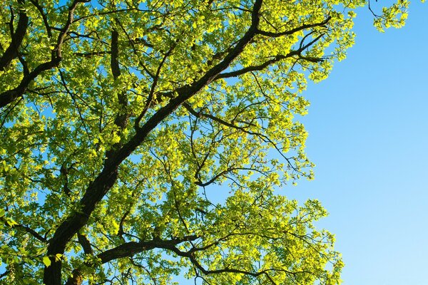 Ніжні розпускаються листя на тлі блакитного неба