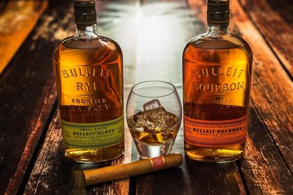 Дві скляних пляшки з віскі і станкан з сигаретою