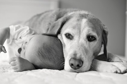 Малюк і собака мило сплять