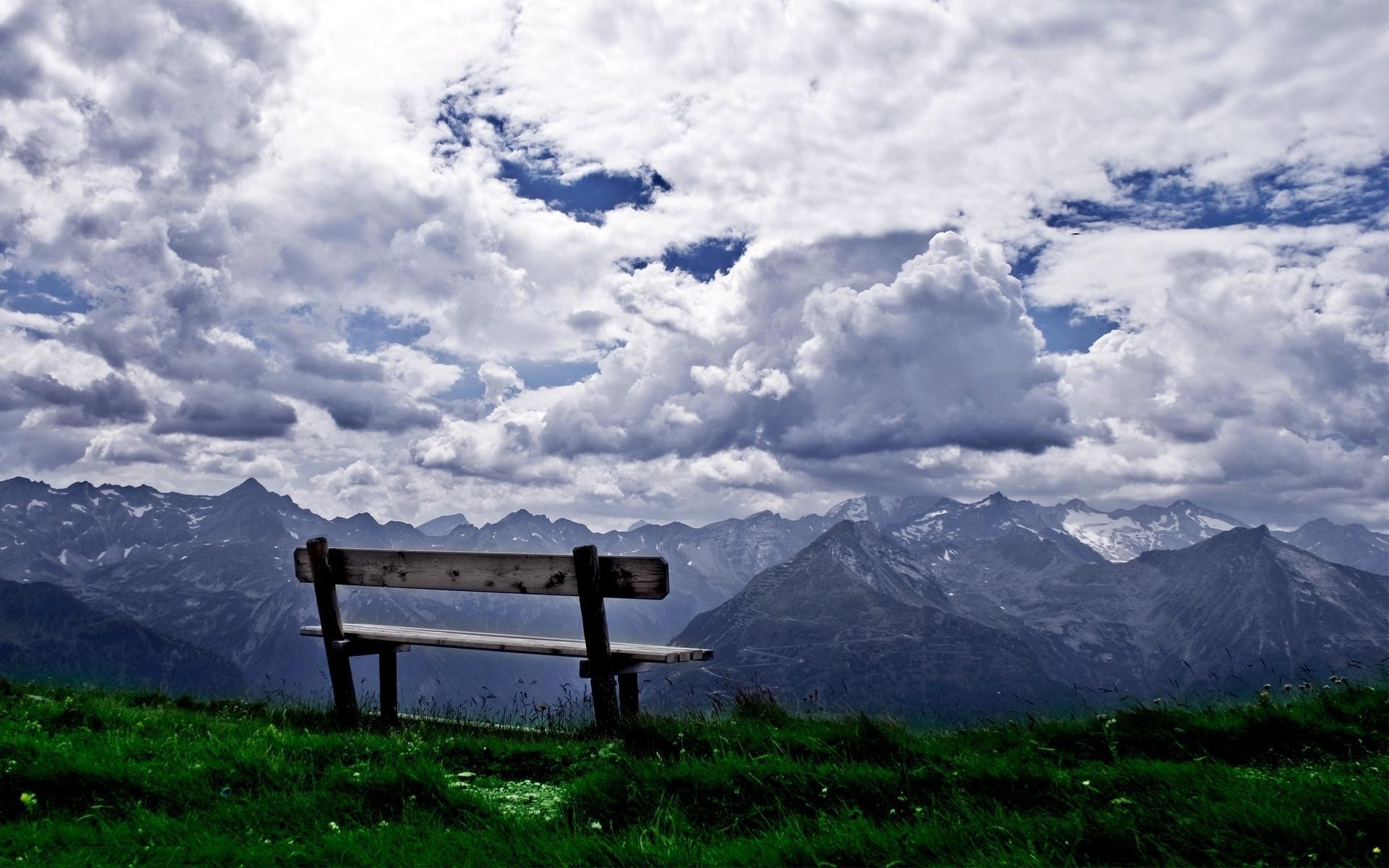 Пухнасті красиві хмари підходять під зелену траву і небо