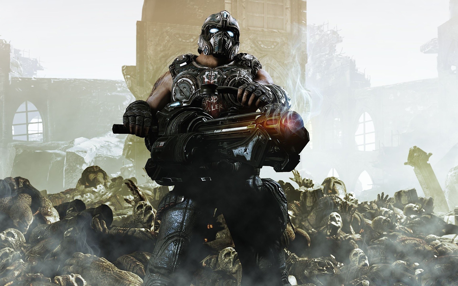 Ілюстрація персонажа зі зброєю і промальованим заднім планом