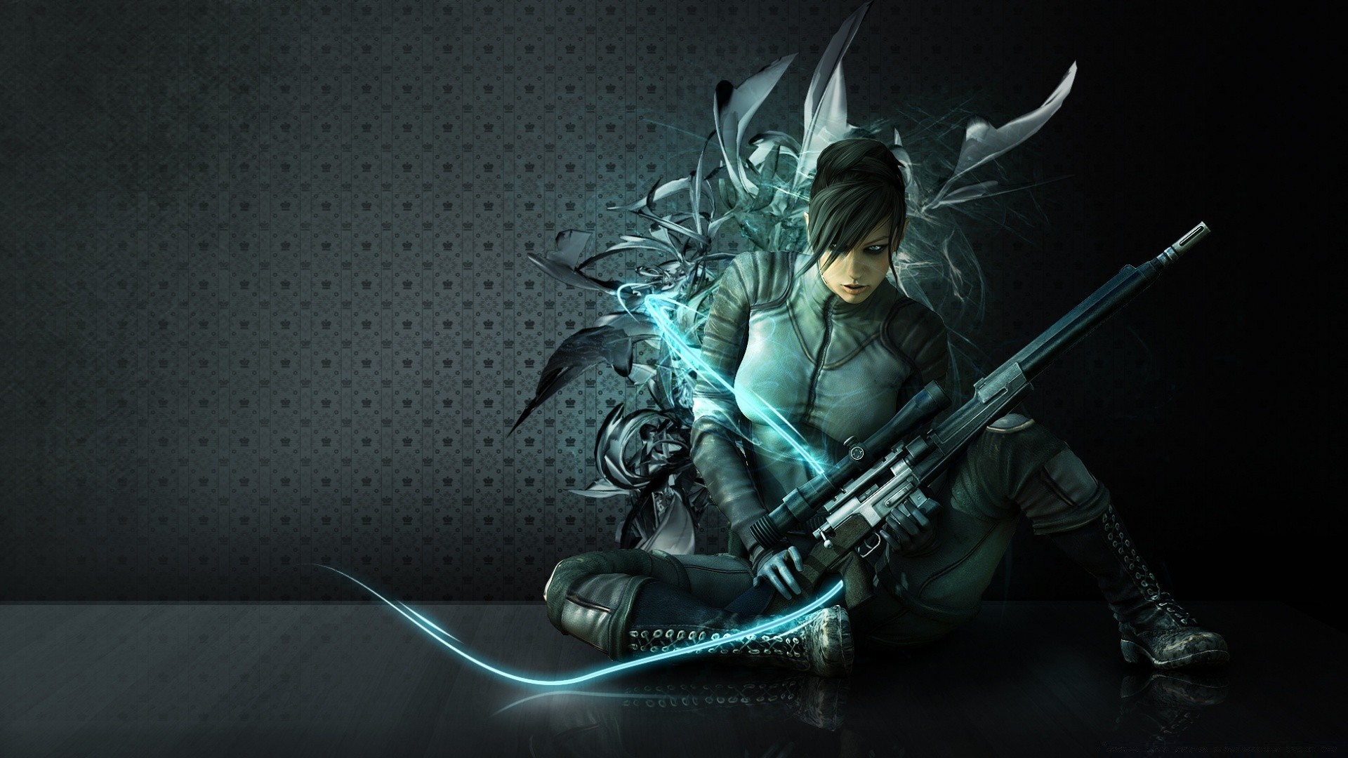 Дівчина сидить зі снайперською гвинтівкою