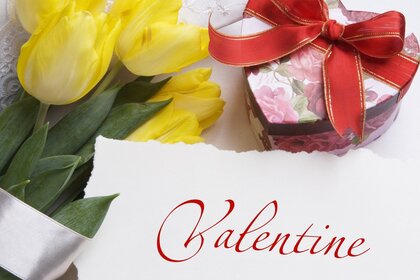 Жовті тюльпани і коробка цукерок на день валентинаЖовті тюльпани і коробка цукерок на день валентина