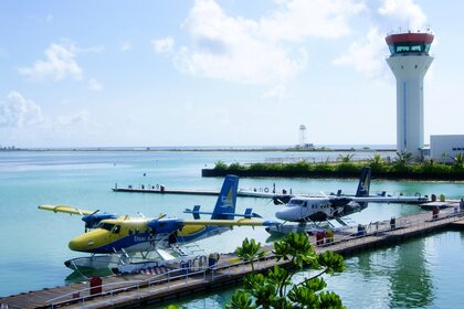 Літак біля води. подорож. море