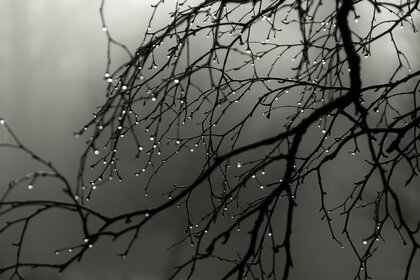 Мокра Гілка дерева в краплях без листя на розмитому тлі