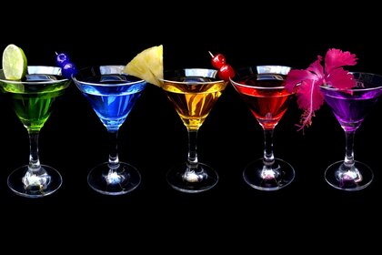 Коктейль в запітнілому келиху з лимоном, м'ятою і оливками