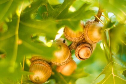 Листя і жолуді при сонячному світлі