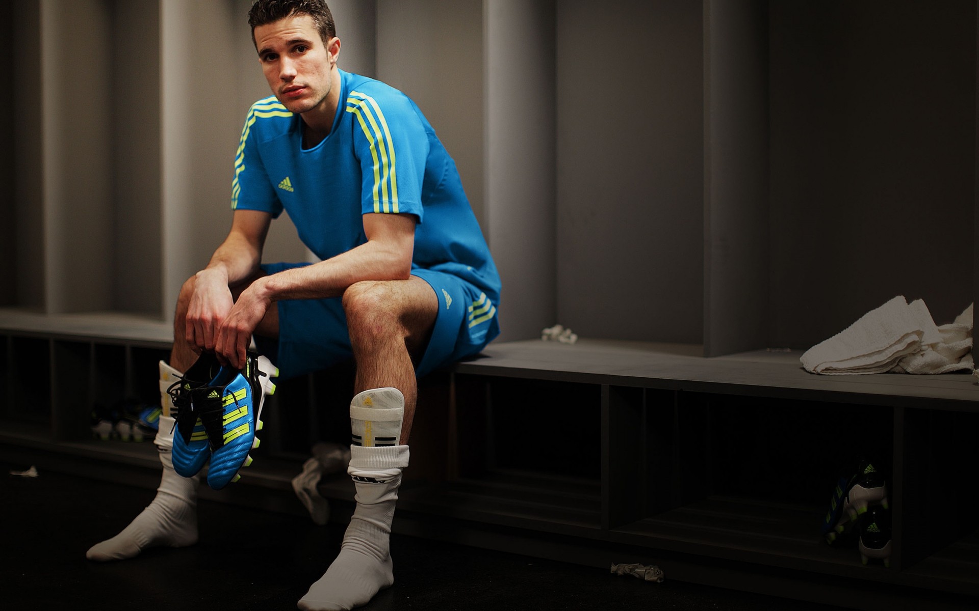 Втомлений футболіст в порожній роздягальні