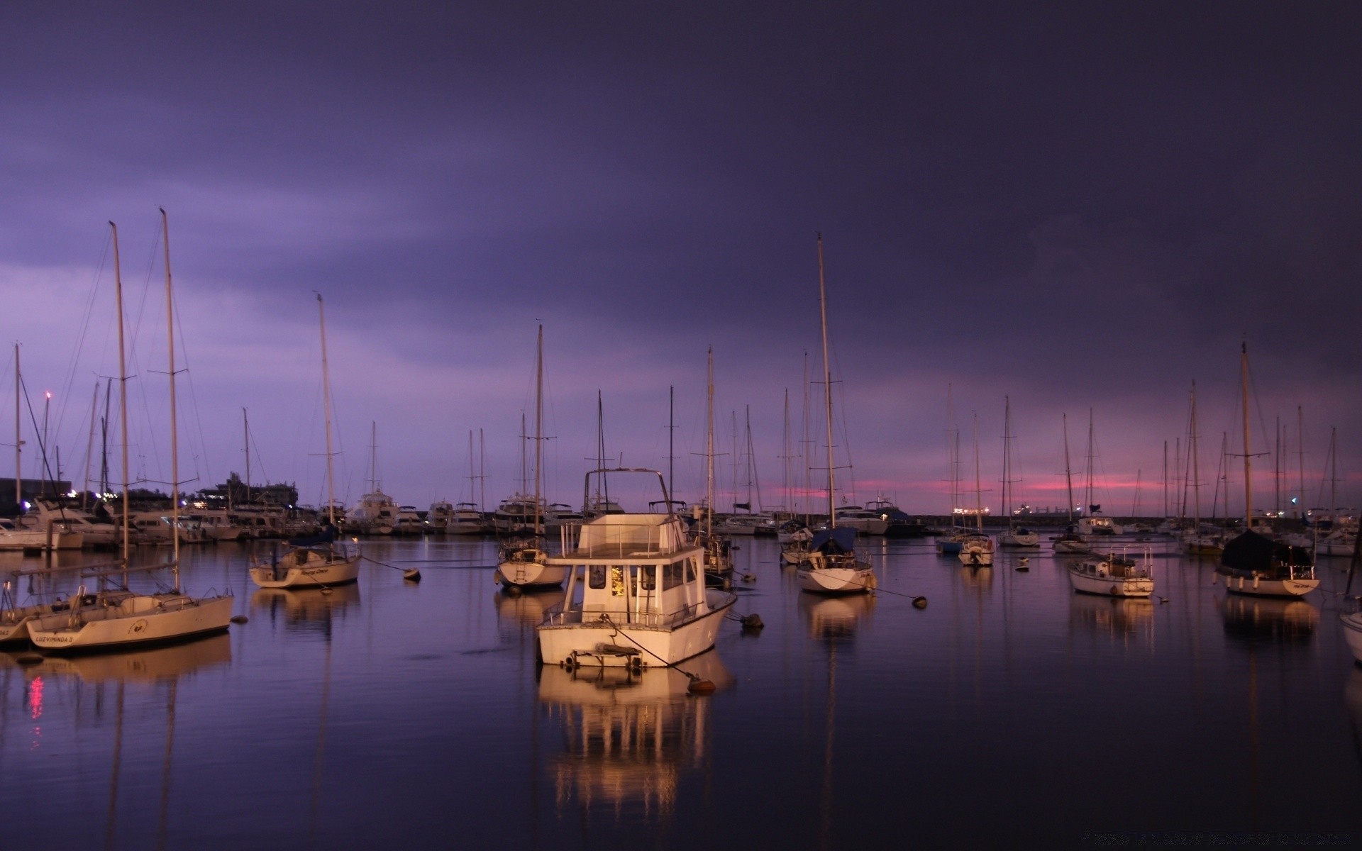 Гавань з яхтами на фіолетовому тлі