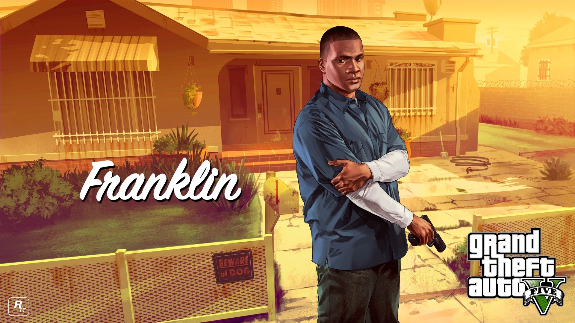Franklin з гта стоїть біля будинку, тримає стовбур в руці і на кого-то недобро поглядаєFranklin з ГТА стоїть біля будинку, тримає стовбур в руці і на кого-то недобро поглядає