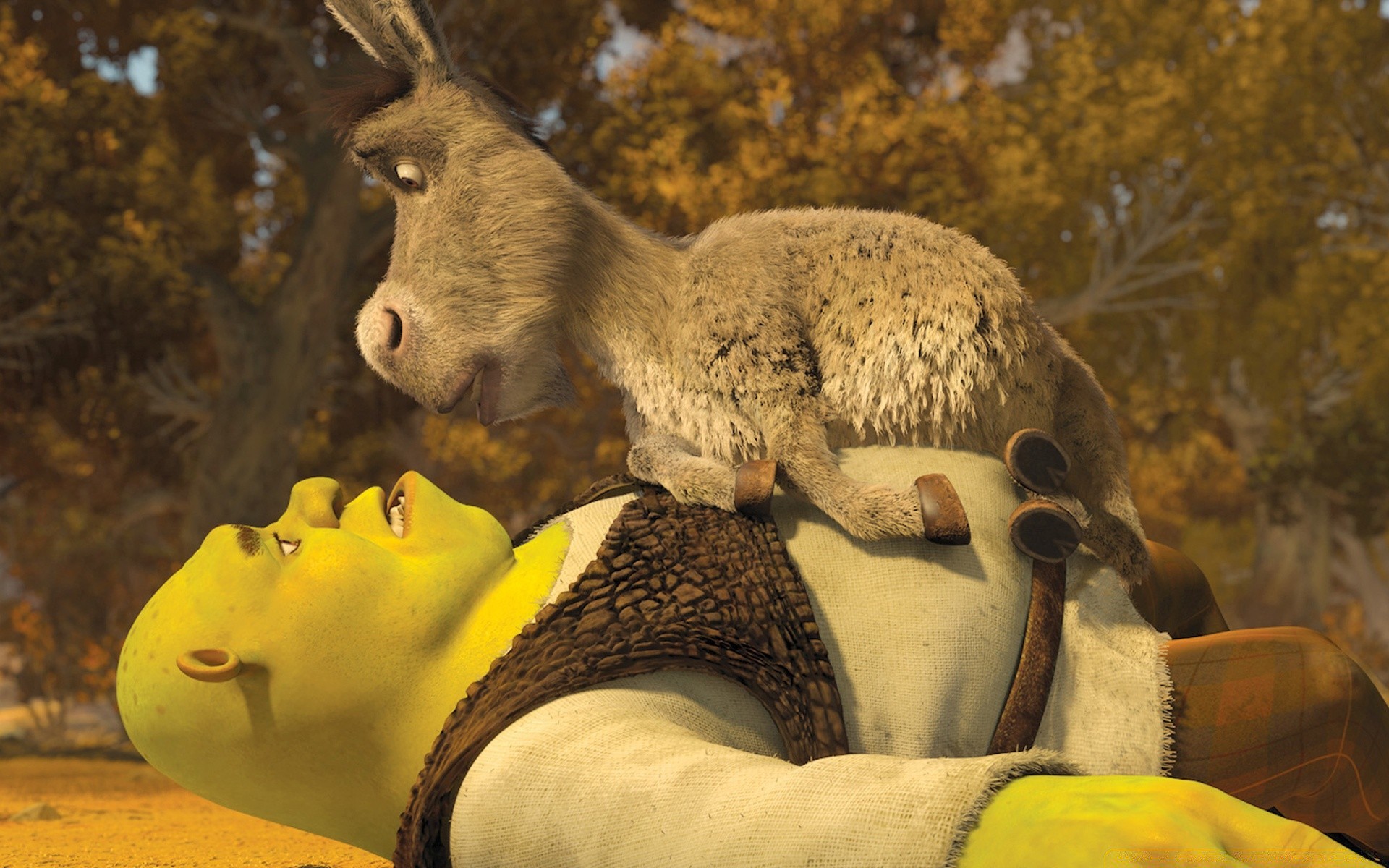 Актор зображений поруч зі своїм мультиплікаційним героєм-Шреком