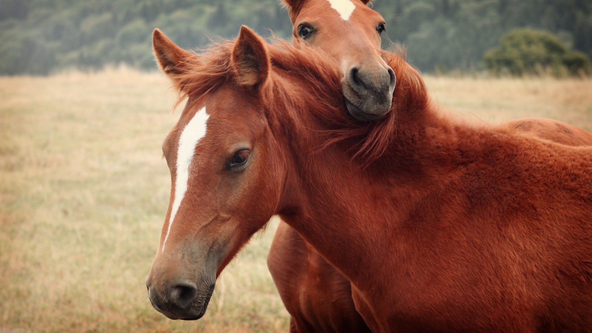 Два коні пасуться на лузі - шпалери на робочий стіл